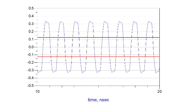 シミュレーションでは良好な信号波形が実測では電源の揺れや外来ノイズなどが原因で思わしくないこともありますので、シミュレーション結果の波形判定は注意が必要です。