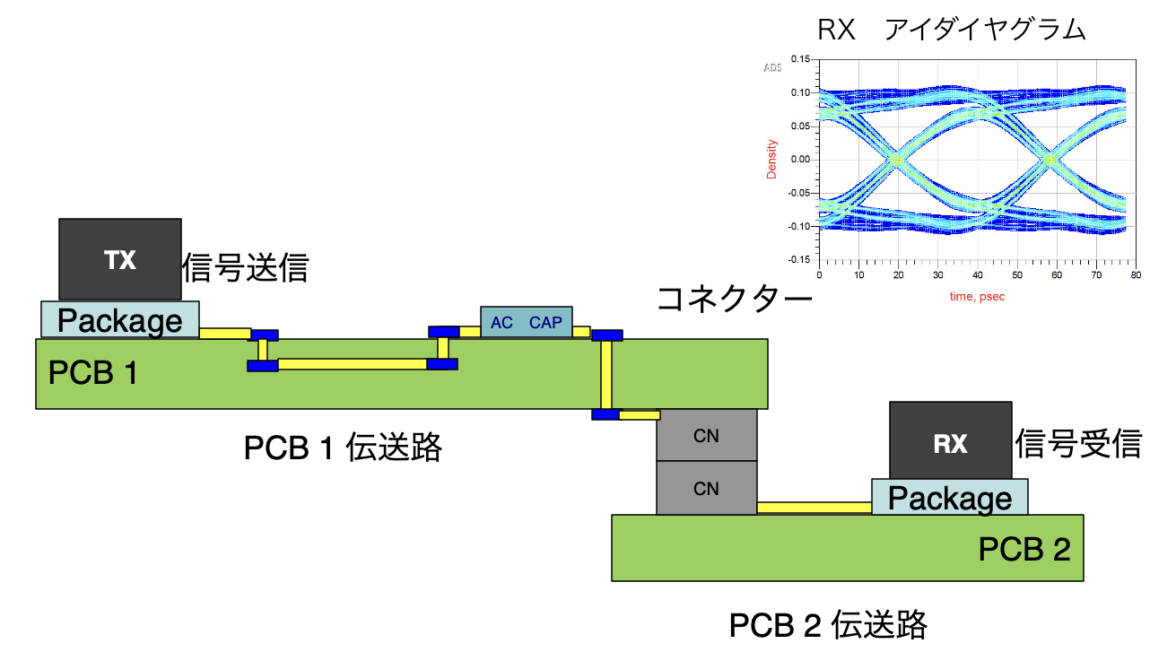 数十GHzまでの動作周波数基板で、各種の信号品質(Signal Integrity :SI)を検証します。